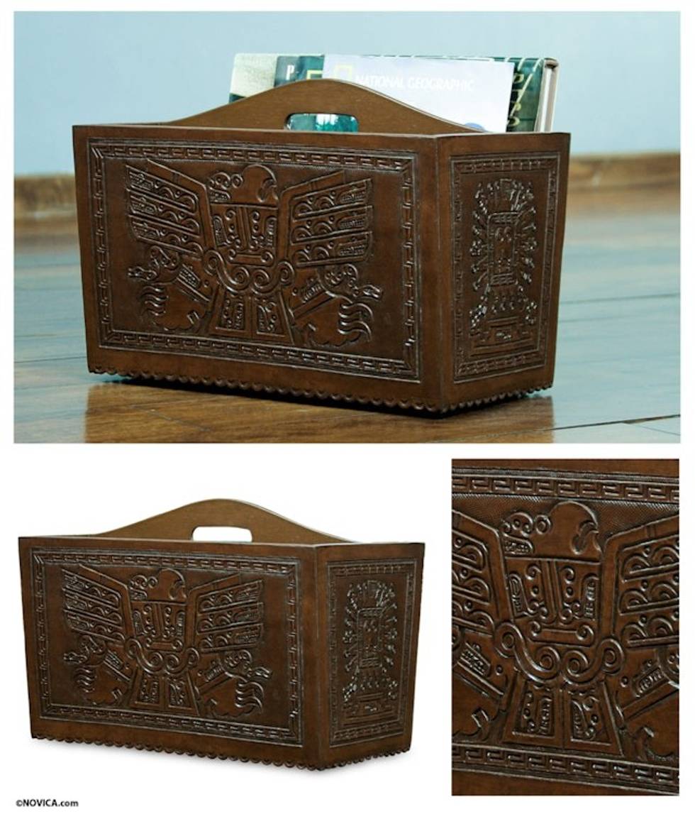 Unique Inca Wood and Leather Magazine Rack 'Nobility' Item ID: 2671689688