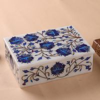 Unique Indian Marble Inlay Jewelry Box 'Wild Blue Flowers' Item ID: 2676663711