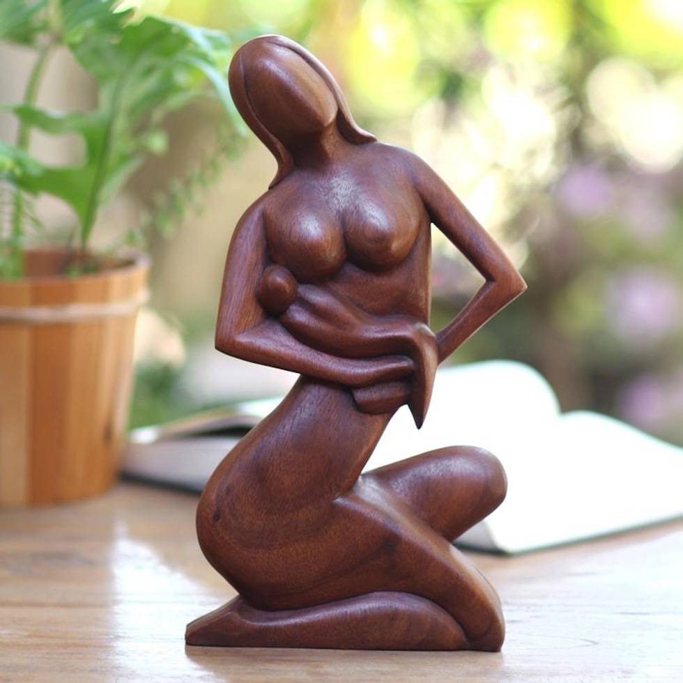 Unique Indonesian Wood Sculpture 'Motherhood' Item ID: 2671700764
