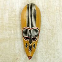 I was immediately attracted to the colors of this mask. They match my sofa and the painting hanging over it perfectly. And of course the expression of the mask is captivating. Sort of a sad face, but also a peaceful face. Love it!Superb crafting and imagination.Marsha