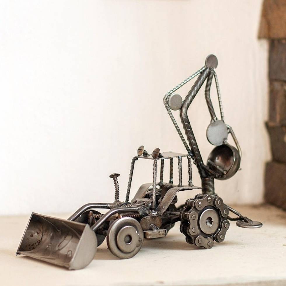 Unique Recycled Metal and Car Parts Sculpture Mexico 'Rustic Bulldozer Digger' Item ID: 2671808767