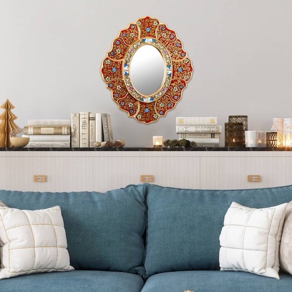 Unique Red and Gold Reverse Painted Glass Wall Mirror 'Floral Crimson' Item ID: 2671819465