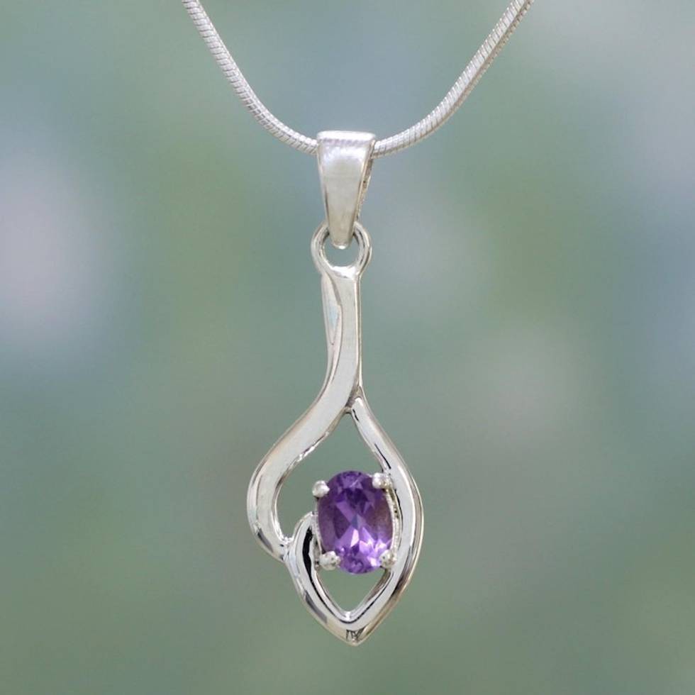 Unique Sterling Silver and Amethyst Pendant Necklace 'Glorious Bud' Item ID: 2671794739