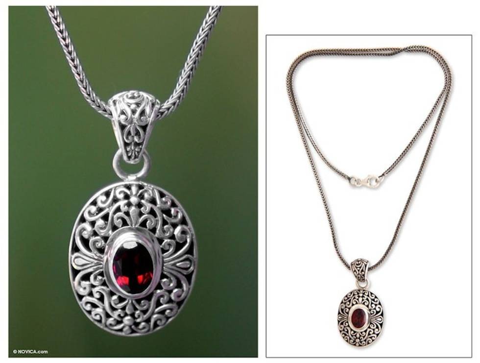 Unique Sterling Silver and Garnet Pendant Necklace 'Scarlet Beauty' Item ID: 2671698288