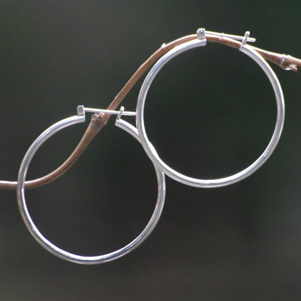 Unique Sterling Silver Hoop Earrings 2 Inch 'Moonlit Goddess' Item ID: 2671820915
