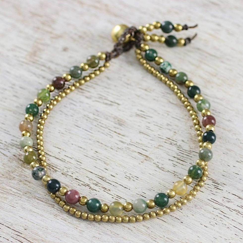 Unique Thai Brass Beaded Jasper Bracelet 'Harvest Harmony' Item ID: 2669930692