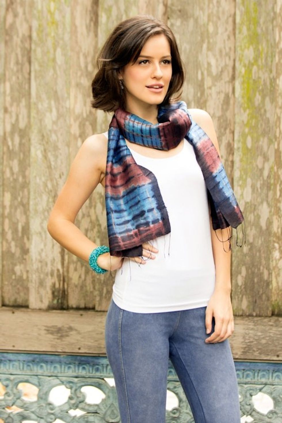 Unique Tie Dyed Silk Scarf 'Blue Thai Sky' Item ID: 2671802960