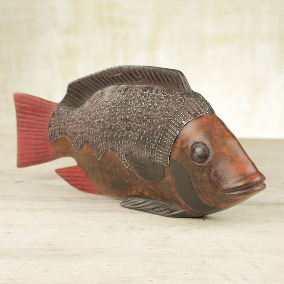 Unique Wood Sculpture from Africa 'Akpa Fish' Item ID: 2671807052