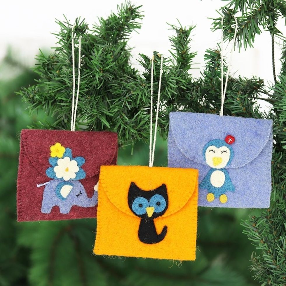 Unique Wool Felt Ornaments from India Set of 3 'Sent With Love' Item ID: 2671789457