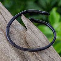 Unisex Black Dyed Leather Cuff Bracelet Handmade in Thailand 'Young Bud in Black' Item ID: 2671798114