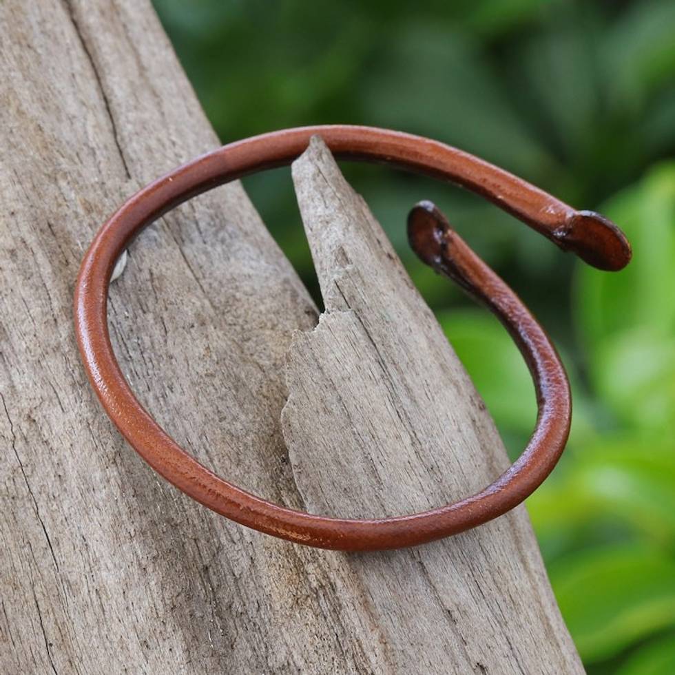 Unisex Brown Dyed Leather Cuff Bracelet Handmade in Thailand 'Young Bud in Brown' Item ID: 2671797757