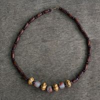 Unisex Sese Wood and Recycled Glass Bead Necklace 'Woodlands' Item ID: 2671806436