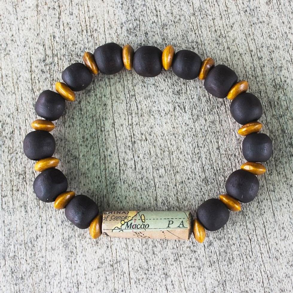 Unisex Sese Wood Bracelet with Recycled World Map Bead '180 Days' Item ID: 2671806572