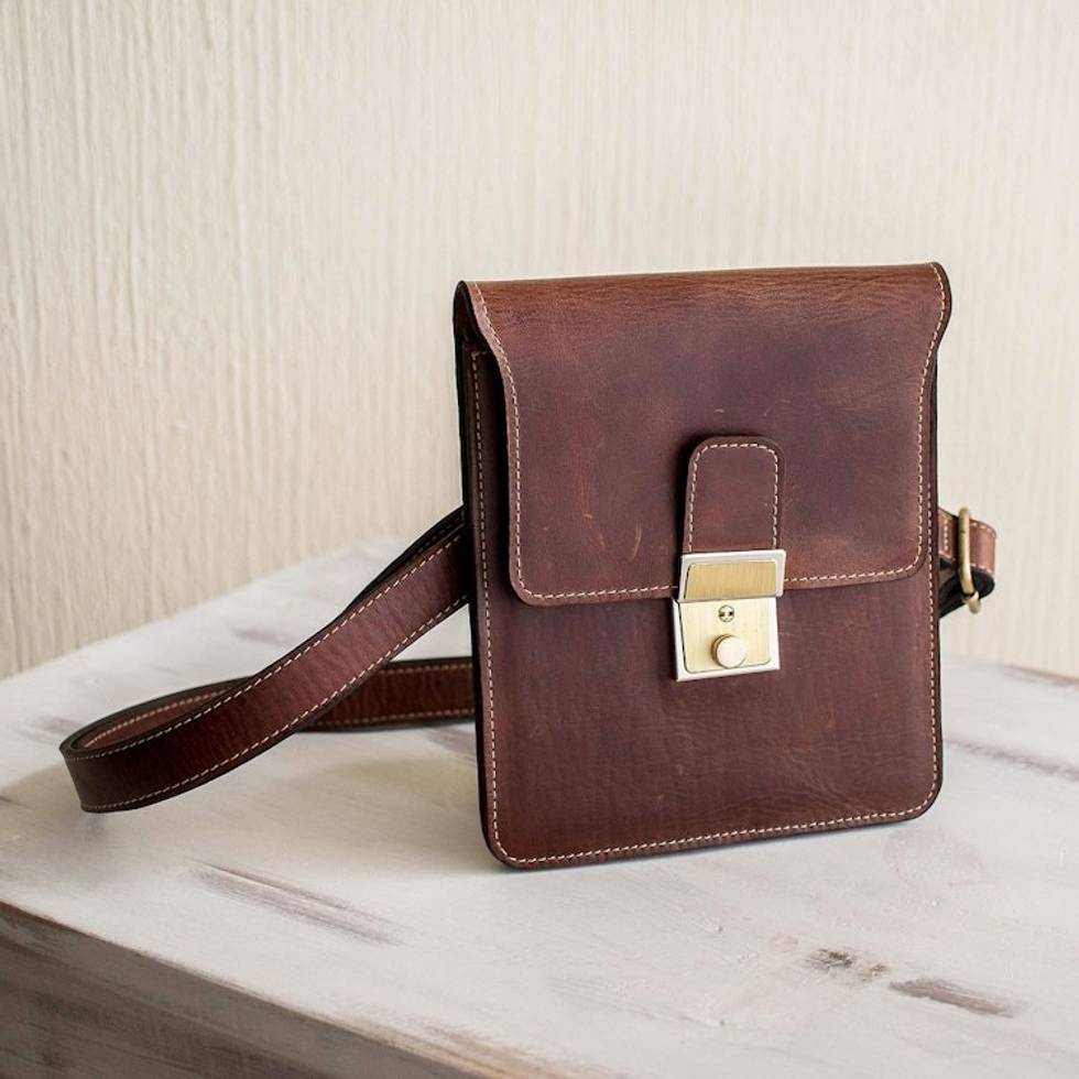 Unisex Small Brown Leather Shoulder Bag 'Quest' Item ID: 2671776972