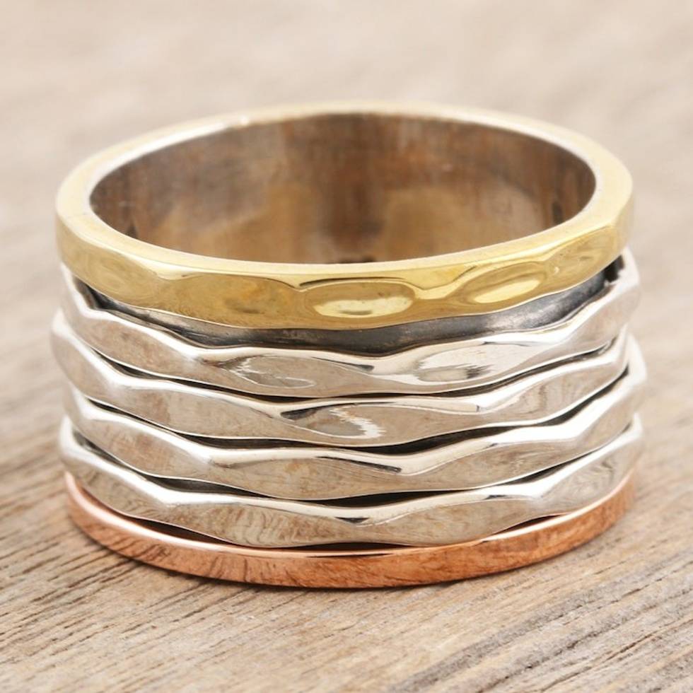 Unisex Sterling Silver Brass Copper Meditation Spinner Ring 'Graceful Alliance' Item ID: 2671788249