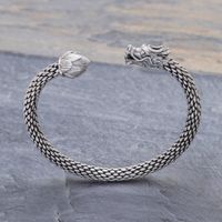 Unisex Sterling Silver Cuff with Dragon and Lotus 'Dragon and Lotus' Item ID: 2671640967