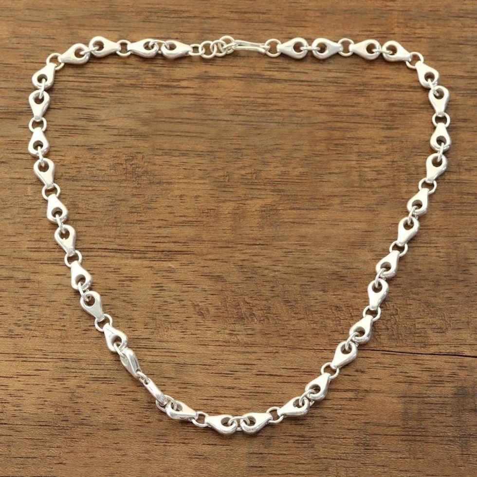 Unisex Sterling Silver Link Necklace Crafted in India 'Rings and Teardrops' Item ID: 2671792682