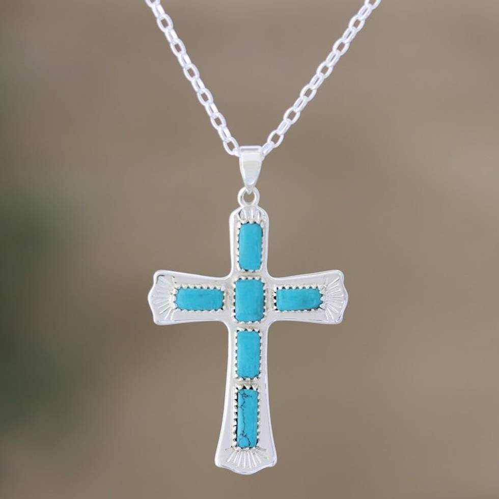 Unisex Sterling Silver Pendant Necklace with Cross Motif 'Heavenly Message' Item ID: 2669944225