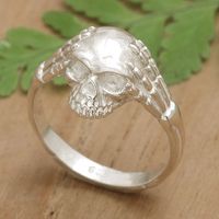 Unisex Sterling Silver Skull Cocktail Ring Crafted in Bali 'Skull Power' Item ID: 2671763124