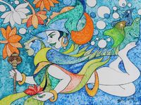 "Besides art, I was also very much interested in photography and took a six-month course in that field upon completion of my 12th standard. After that, I did a four-year diploma course in painting at the Bharatiya Vidya Bhavan Institute of Art and Culture. I was so fascinated by the beauty of art that I couldn't deny the fact that I was in love with it. As I learned every stroke, each line, I was more and more attracted to the world of art. In 1993, after my four-year painting course, I continued this journey and received a BA degree in fine arts. Here I came in contact with a variety of art media and enjoyed every bit of it. I don't want to be bound by any particular theme or style and have tried my hand at almost everything connected with art, like wood sculpting, clay molding, metal, fiberglass, wrought iron, ceramics, etc. I did quite a bit of work in wrought iron and metal sculpting and got a good response. I love working on Ganesha themes and have done quite a lot of pieces on this deity.
