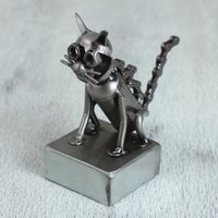 Upcycled Metal Auto Part Cat Sculpture from Mexico 'Sitting Cat' Item ID: 2669897686