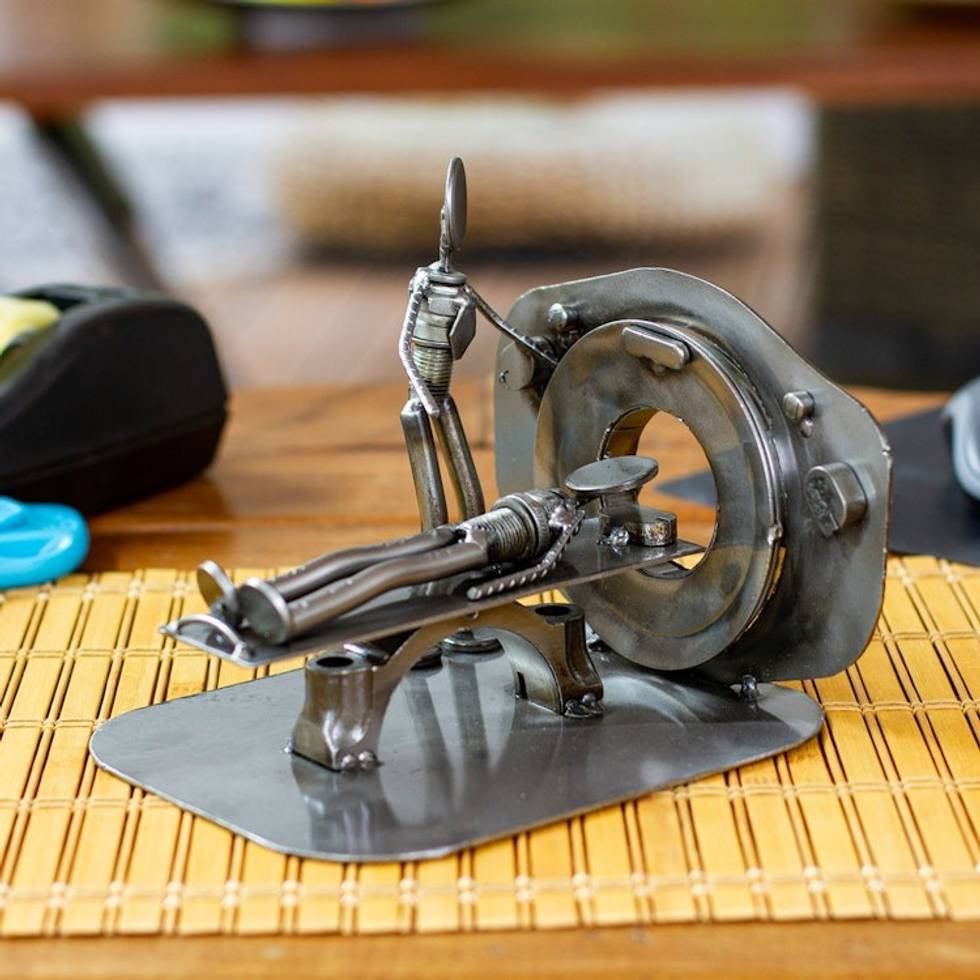 Upcycled Metal Auto Part Sculpture from Mexico 'Day at the Doctor' Item ID: 2671808580