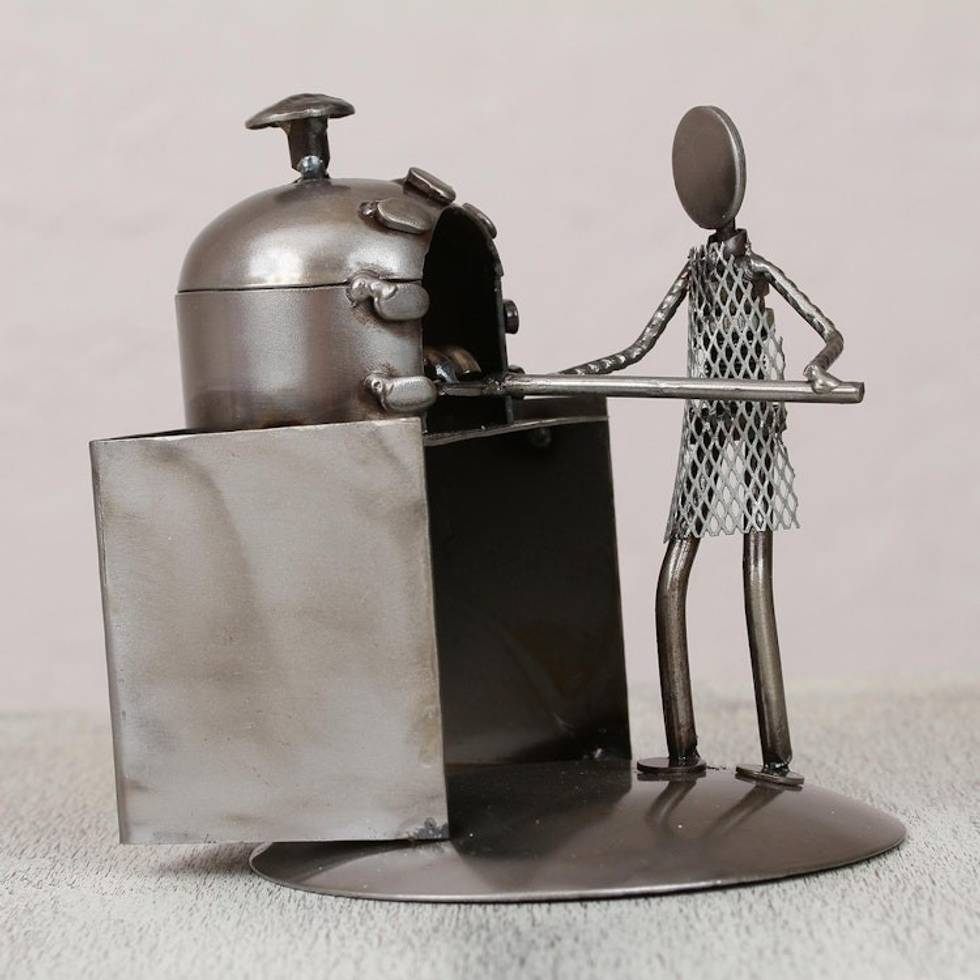Upcycled Metal Auto Part Sculpture of a Baker from Mexico 'Baker' Item ID: 2671808658