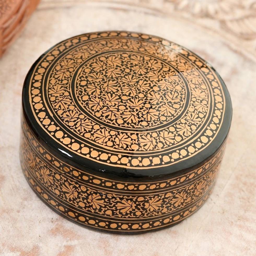 Velvet-Lined Black and Gold Decorative Box 'Kashmir Luxury' Item ID: 2671789861