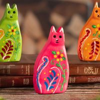 Vibrant Floral Ceramic Cat Statuette from Peru 'Guardian Kitten' Item ID: 2671399644