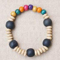 Vibrant Recycled Glass and Sese Wood Beaded Stretch Bracelet 'Divine Touch' Item ID: 2671804153