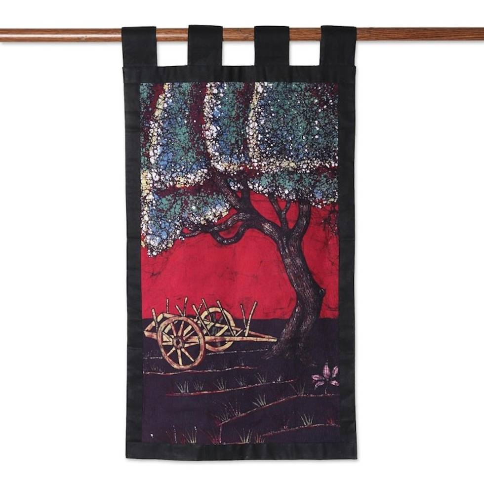 Village Scene Batik Cotton Wall Hanging from India 'Spring Village Scene' Item ID: 2671792771