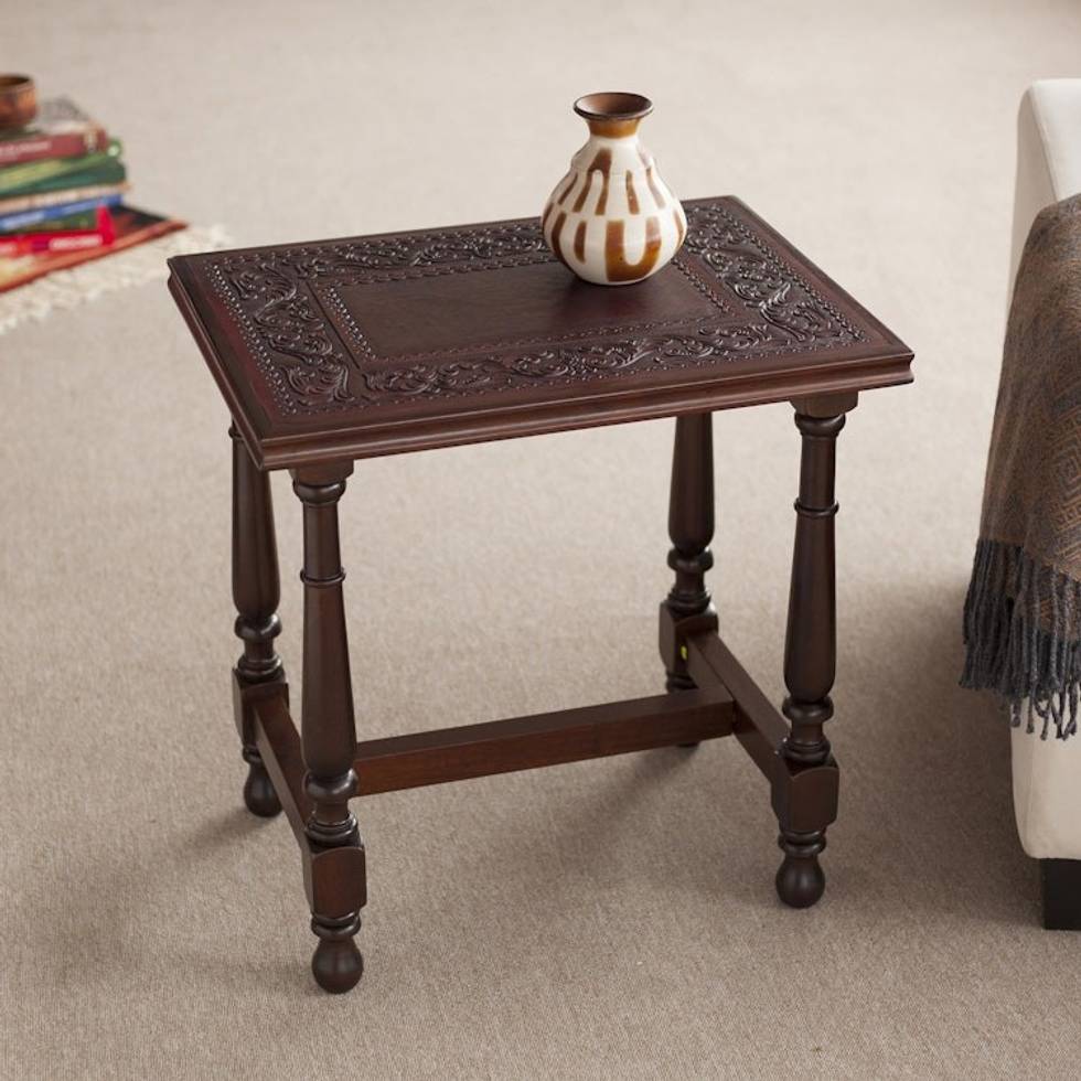 Vine Motif Leather and Wood Accent Table from Peru 'Vines of Autumn' Item ID: 2669891227