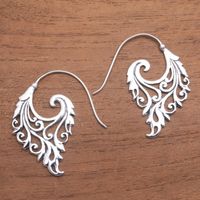 Vine Motif Sterling Silver Half-Hoop Earrings from Bali 'Exciting Vines' Item ID: 2671480665