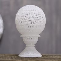 Vine Pattern Alabaster Tealight Holder from India 'Vine Dome' Item ID: 2671789757