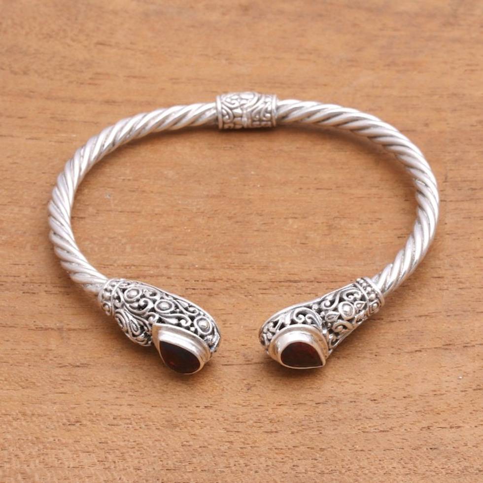 Vine Pattern Garnet Cuff Bracelet from Bali 'Vine Inspiration' Item ID: 2671737182