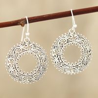 Vine Pattern Sterling Silver Dangle Earrings from India 'Ring of Vines' Item ID: 2671789822
