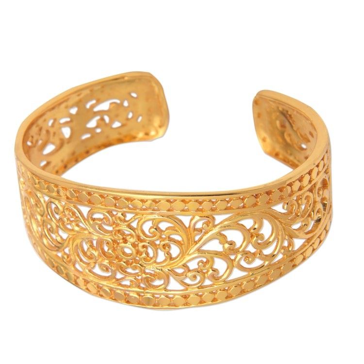 Vine-Themed 22k Gold-Plated Filigree Cuff Bracelet 'Pure Grandeur' Item ID: 2671669391