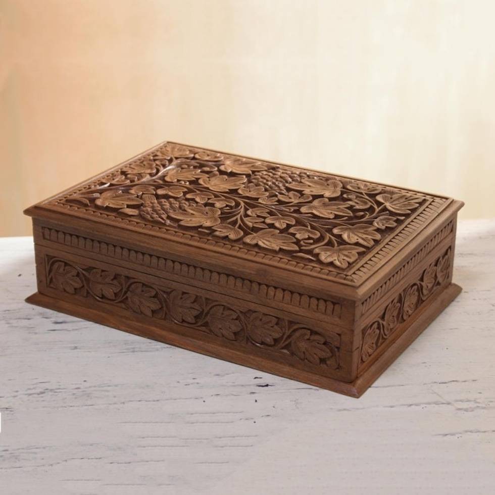 Walnut wood jewelry box 'Tempting Grapes' Item ID: 2671794918