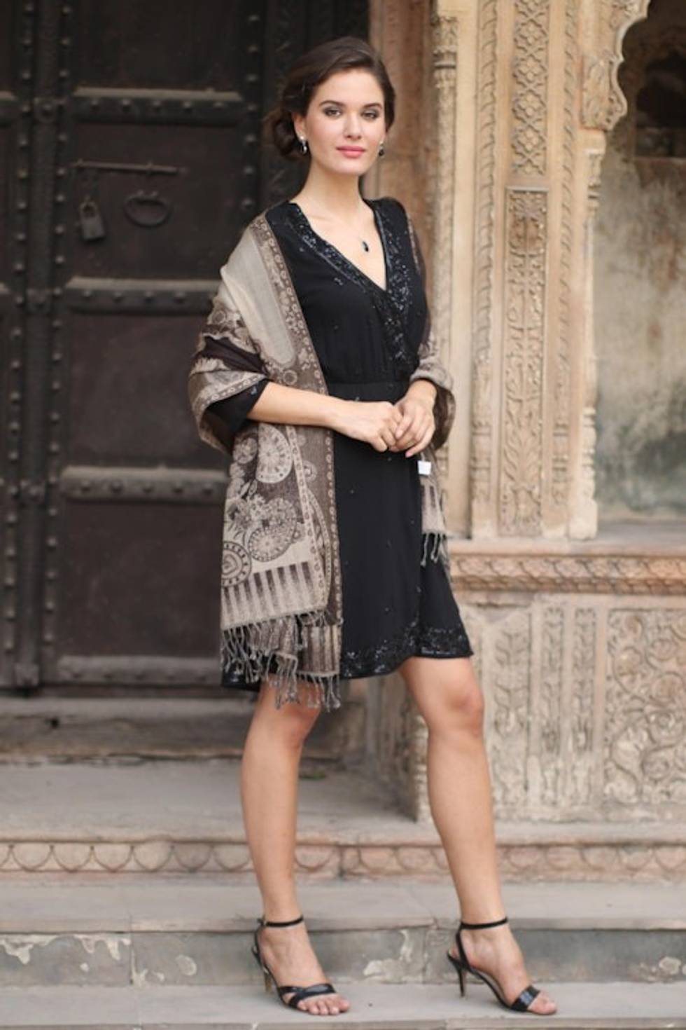 My mother passed away and I had a Navy dress I wanted to wear to the funeral, but it was sleeveless...too cold for Wisconsin in April. I tried to find a sweater or shrug, but everything looked frumpy. Then my Jamawar wool shawl came in the mail. It was perfect! I appreciated the hand written note from Sandeep Malhotra, the artisan. Thank you for helping me feel my best on an important day.