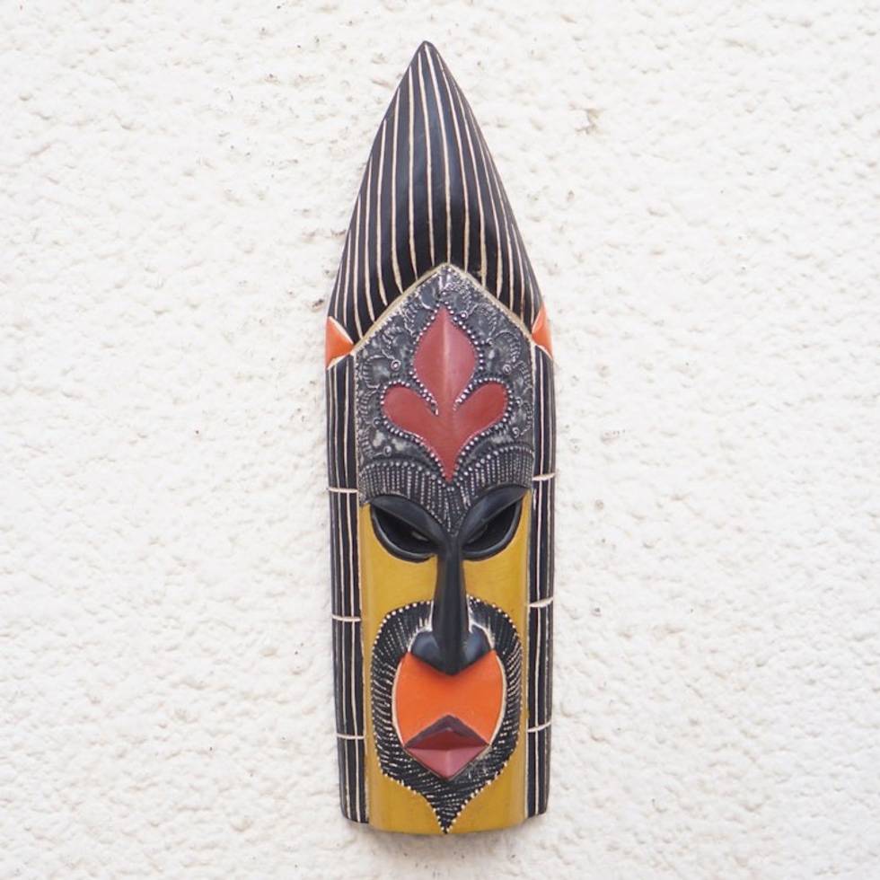 Warm Toned African Sese Wood Mask with Aluminum Accents 'Atanga' Item ID: 2671805330