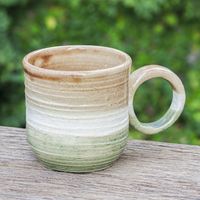 Warm-Toned Ceramic Mug Handcrafted in Thailand 'Natural Energies' Item ID: 2669894211