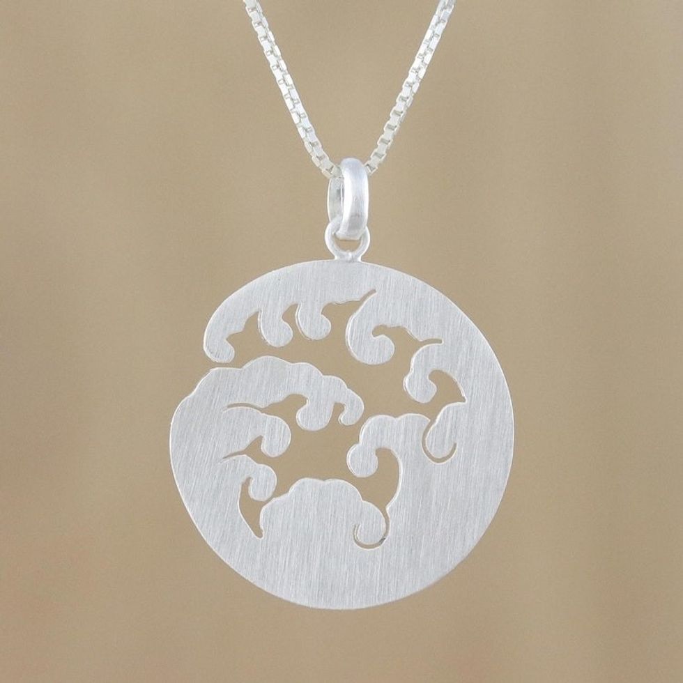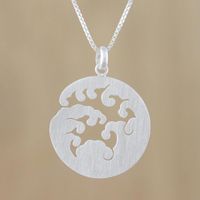 Wave Design Sterling Silver Pendant Necklace from Thailand 'Circle of Waves' Item ID: 2671801365