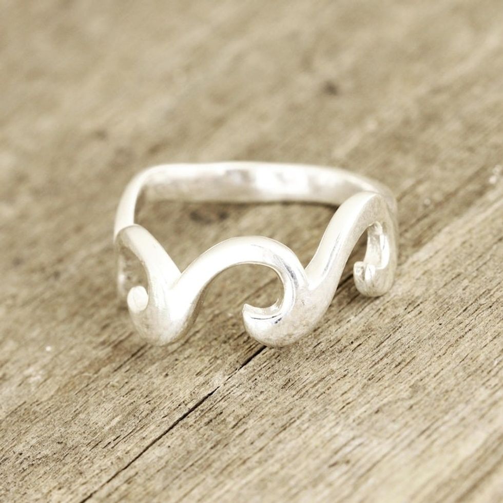 Wave Pattern Sterling Silver Band Ring Crafted in India 'Waves and Style' Item ID: 2671789982