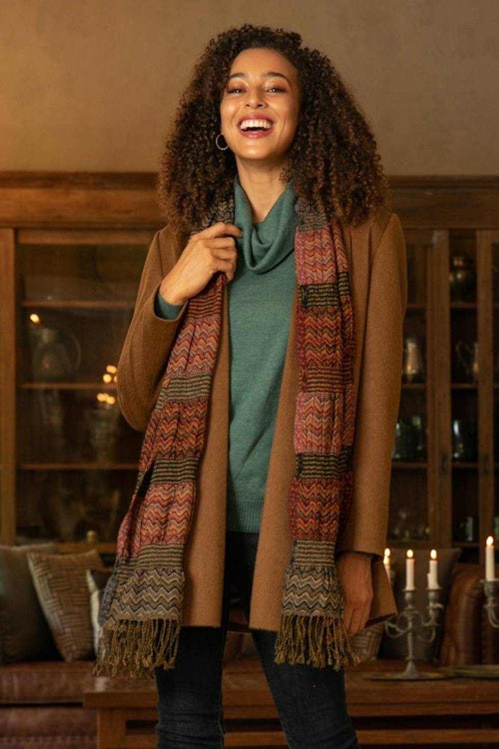 Wave Pattern Wool Scarf from India 'Autumn Waves' Item ID: 2669943787