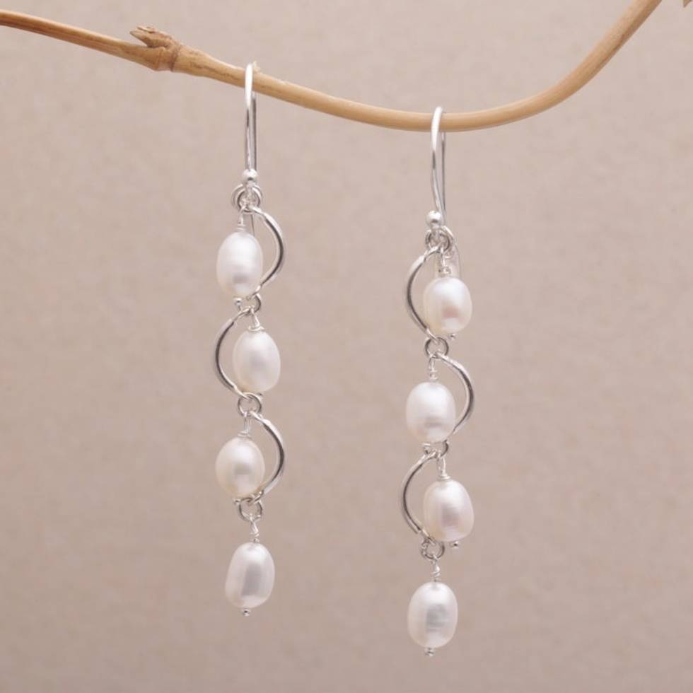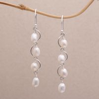 Wavy Cultured Pearl Dangle Earrings from Bali 'Heavenly Trail' Item ID: 2669920846