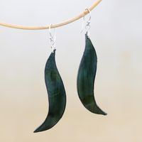 Wavy Leather Dangle Earrings in Green from Thailand 'Lithe Leaves in Green' Item ID: 2671799559