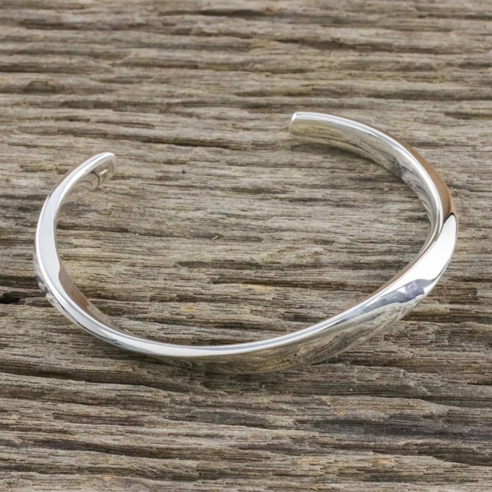 Wavy Sterling Silver Cuff Bracelet from Thailand 'Space Wave' Item ID: 2669926660