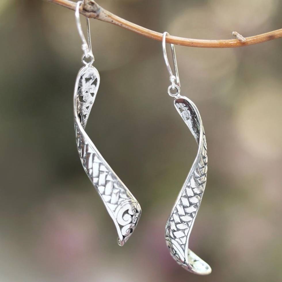 Weave Pattern Sterling Silver Dangle Earrings from Java 'Curving Weave' Item ID: 2671745010