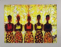 Currently I have developed my own techniques in batik production, which are labeled as "textile paintings." Reactive dyes and paraffin wax constitute the principal materials in the execution of these textile paintings. My aim was to use other materials apart from oil paints, gouache, acrylics etc., to achieve the same or better effects than would be derived in paintings. The results have been marvelous and my works could not be compared with other batiks that are seen world-wide.