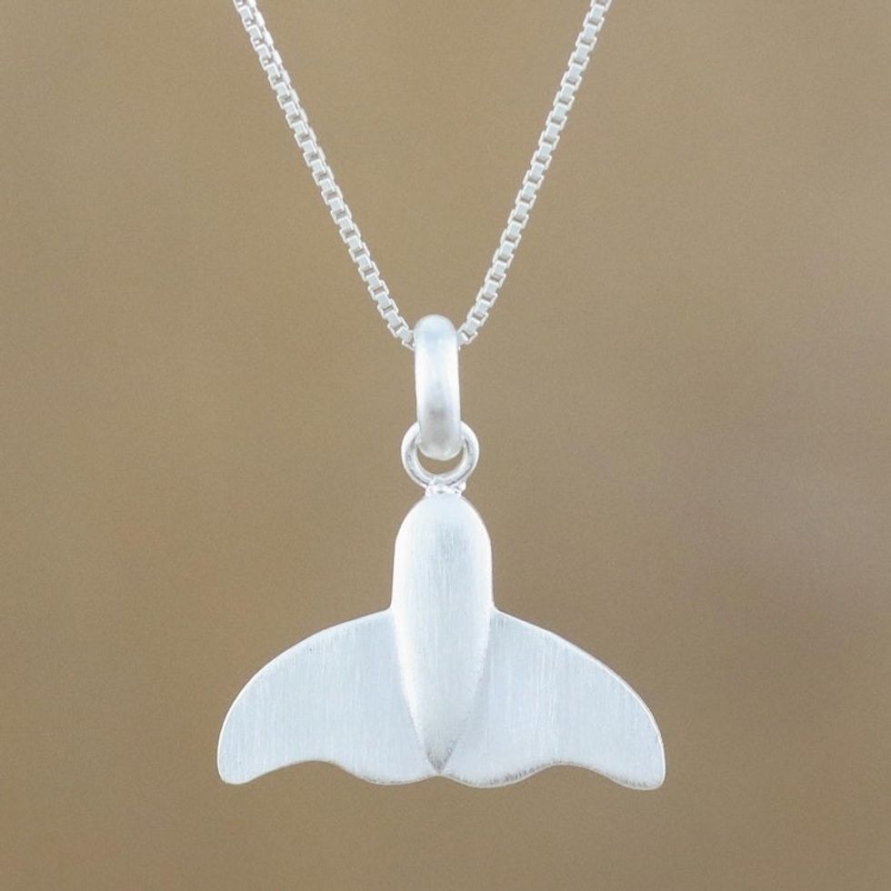 Whale-Themed Sterling Silver Pendant Necklace from Thailand 'Whale's Goodbye' Item ID: 2671800888